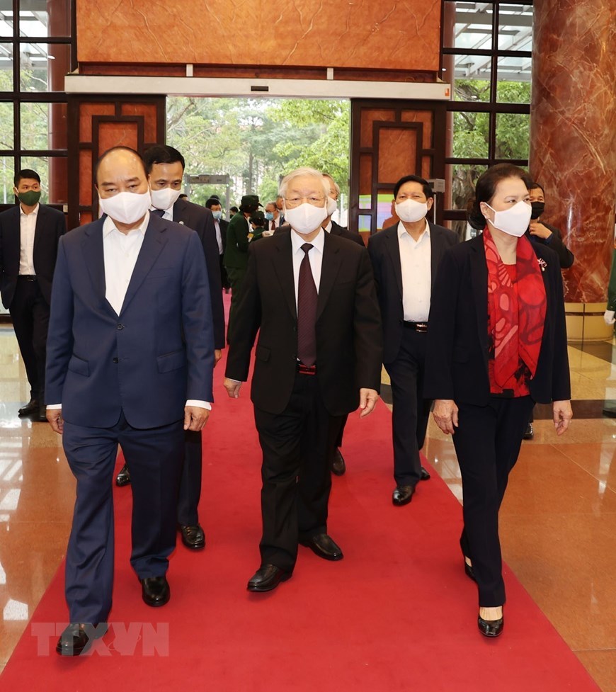 Tổng Bí thư, Chủ tịch nước Nguyễn Phú Trọng cùng các lãnh đạo Đảng, Nhà nước đến dự hội nghị. Ảnh: TTXVN |